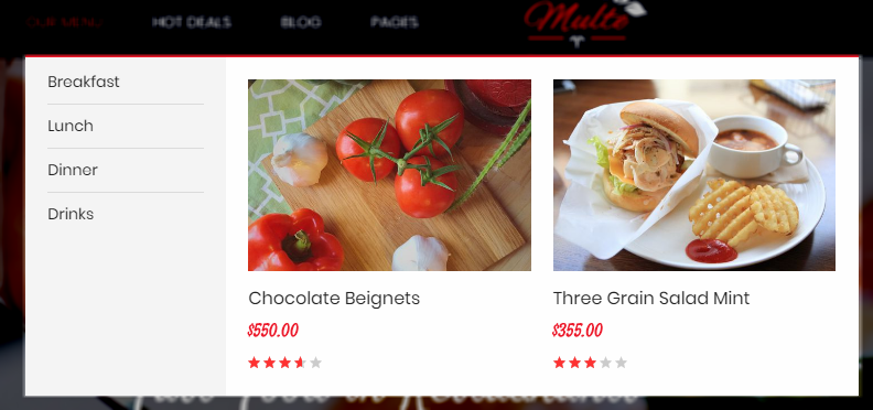 Select Effect: We support effects for Mega menu (CSS/Animation/Toggle)