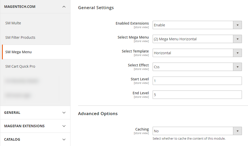 In Magento admin panel, navigate to Stores >> Settings >> Configuration >> MAGENTECH.COM >> SM Multe and configure its settings as you want.