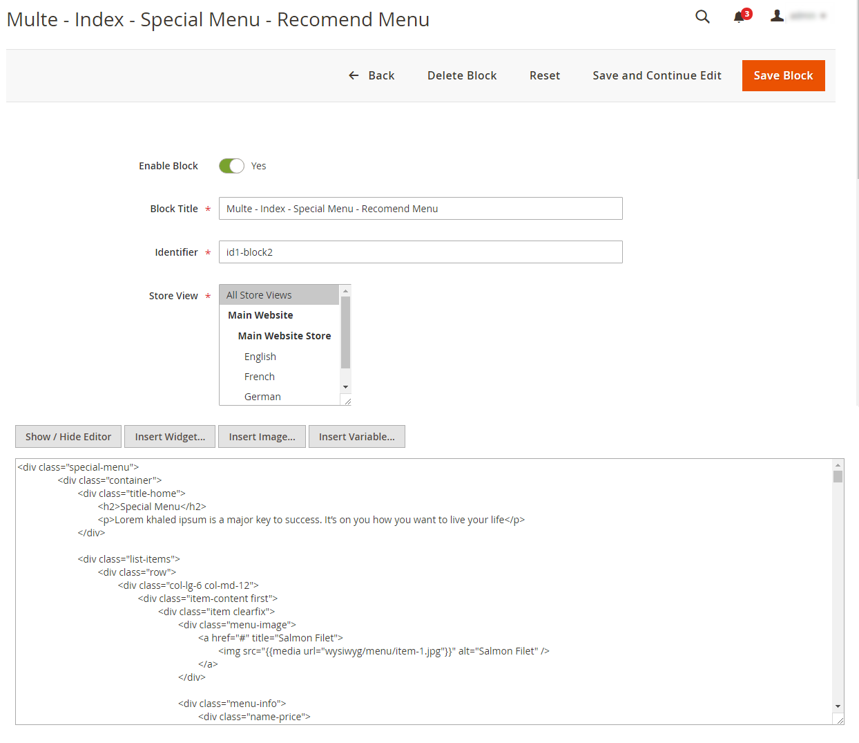3. Please remember that: If you have imported these Static Blocks, Pages successfully, you would have all blocks and pages provided with this theme and you do not need to create any static blocks or pages manually as the following instruction of this document.