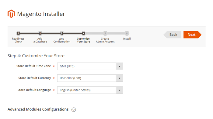 - Step 9: Customize your store: you can choose Time Zone, Currency and Languages.