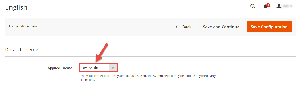 Select "SM Multe" theme in Content > Design > Configuration > Edit Default Store > Select "SM Multe" theme.