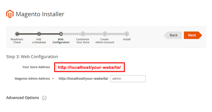 - Step 5: Run installation process by opening browser and navigate to your URL.