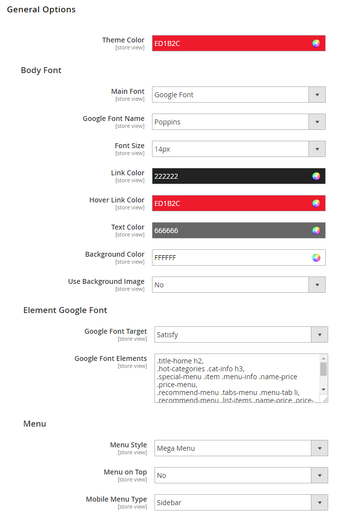 Theme Color: In this option, you can set main color of entire page.